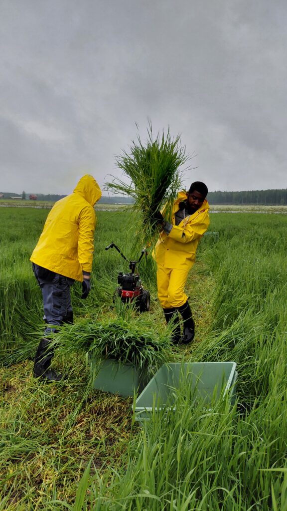 Last summer was the first season in the PRIMARY project for grass harvesting for green biorefining. We targeted pure timothy and red clover swards in Jokioinen, Finland. Summer 2025 was very rainy, which was good for grass growth. The humid conditions did however challenge the harvesting procedures and raincoats were very much needed during the field work… Under our pilot-scale conditions, the grass biomass collected could be luckily dried artificially so that we did not need to work with suboptimal raw materials. However, the risk of unfavourable harvesting conditions is inevitably something that is faced occasionally in practice as well.